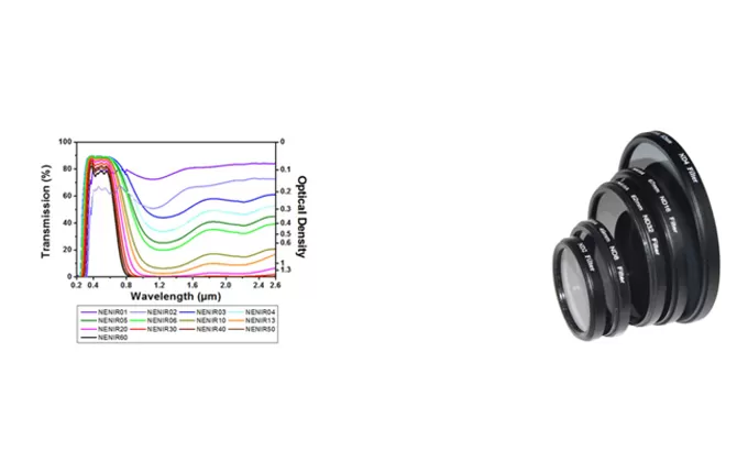 ECOPTIK stellt Neutraldichtefilter mit festem optischem Wert (OD) her, indem eine Inconel-Schicht auf einen transparenten Träger aufgebracht wird. Der Vorteil dieser Filter liegt in ihrem breiteren Wellenlängenbereich und der geringeren Welligkeit im Vergleich zu Absorptionsfiltern. Der Wellenlängenbereich der Beschichtung kann auf 200 nm bis 1100 nm oder mehr erweitert werden. Ein Nachteil ist die geringe Lichtreflexion auf dem Filterglas. Der OD-Wert variiert zwischen 0,1 und 0,5 und wird durch die Dicke der Inconel-Dünnschicht gesteuert. Die Standarddicke der Neutraldichtefilter beträgt 1,1 mm oder 0,55 mm.